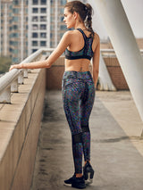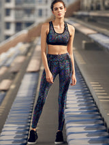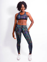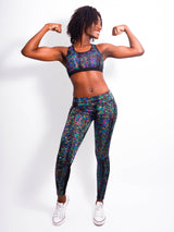 The Illude sports set is fun and funky! A vibrant colour palette behind zebra stripes. The top bra is supportive and durable with padded inserts and the leggings have linear and accentuating panel lines with mesh insert panels behind the knee. Train and feel confident in this sporty number!