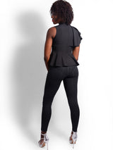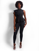 This peplum top is perfect for a variety of occasions, whether you're headed to the office or out for drinks with friends. The semi-structured silhouette and asymmetrical ruffle detailing make this top both stylish and unique.