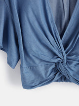 The Tabbatha top is a cotton denim front twist crop with flouncy sleeves and is elasticated at the back waist. Look great and pair this with a matching colour denim pant, gold accessories and tan heels. You can never wear too much denim!