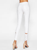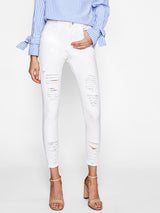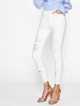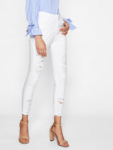 The Echo skinny jeans are highwaisted with trendy distressed tears front and back. Cotton blended with Spandex to allow comfortability in movement day to night.
