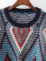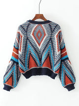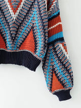 Multi-coloured Aztec Puff Sleeve Knitted Jumper