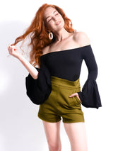Tailored High Waisted Green Shorts