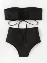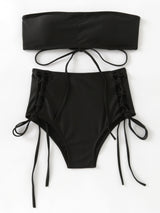 The Black Puerto High Waist Lace Up Bikini Bottoms is made from a soft nylon blend which offers the perfect supply of stretch against your body. It features a high waisted bottoms with lace-up detailing on the sides. The perfect amount of baring skin if you are feeling cheeky. Pair with the Puerto Bandeau Bikini Top.
