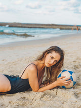 The ultimate one piece that will bring you comfort, charisma and support. Fully lined and padded, the Thorne one piece in black offers a scooped neckline, crossover lace-up back and a ruched backside to show off your cheeky side. Made from a soft nylon blend which offers the perfect supply of stretch against your body.