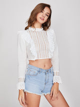 The Doyle bodice is a show stopper at social events, it is so light and breezy that long sleeves in summer won’t be a problem. Features a front eyelet trim patter at the front with frilled seams, frilled high neckline and frilled sleeve cuffs. Enclosed with a visible metal zipper at the centre back seam, you can wear this gorgeous number with a flowing high-waisted skirt and heels.